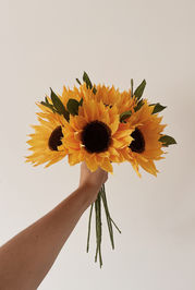 Amantes de girassóis, a Anna já tinha usado eles na decoração do seu casamento e agora queria na sua casa. Para alegrar e encantar a entrada de casa, ela encomendou 7 girassóis de papel e assim coloriu seu lar com flores que duram (muuuito) mais que uma semana.